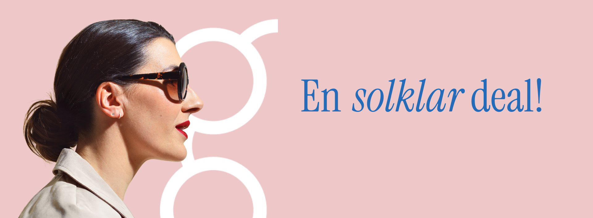 Om du beställer glasögon med bästa behandlingen (IP NT 1200 kr) hos oss under perioden 2 mars till och med 21 juni så får du ett par solglasögon i din styrka på köpet.
